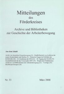 Mitteilungen Heft: 33/ März 2008 Leitartikel (1) Archiv und Bibliotheken (2) Notiz (4) Übersichten und Findbücher (5) Tagungen und Konferfenzen (12) Aus dem Vereinsleben (19)…